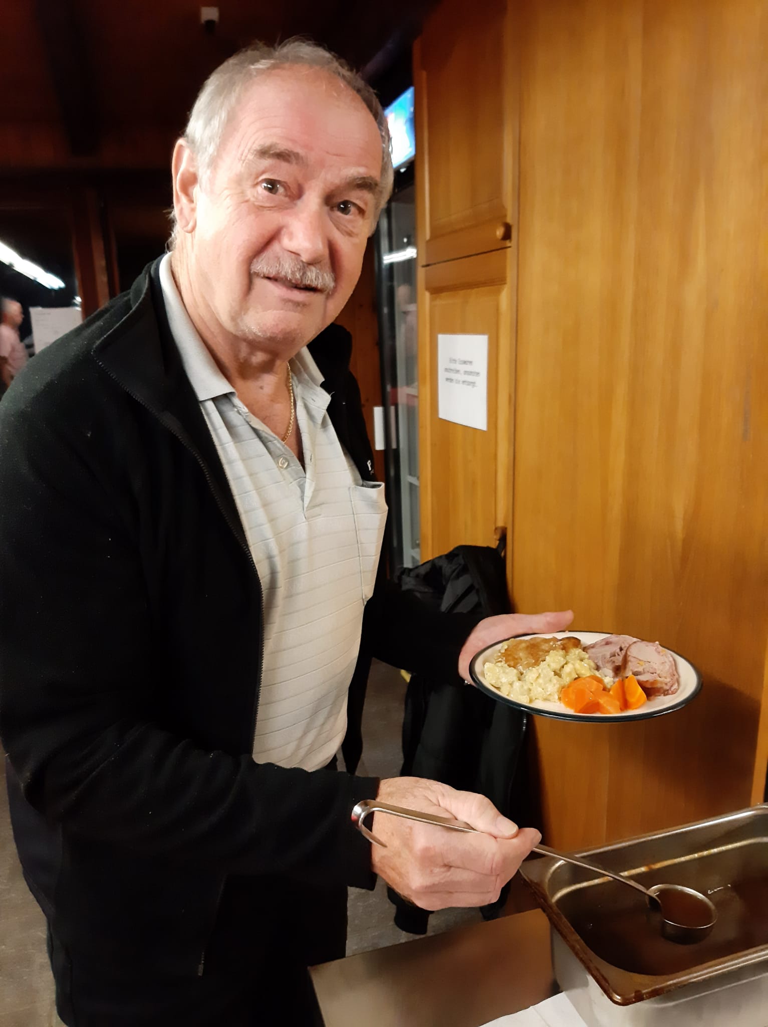 Nach der ersten Jassrunde wurden wir durch ein leckeres Nachtessen von der Metzgerei Haas verwöhnt. Mit Nüsslisalat und Ei zur Vorspeise, einem feinen Schweinsfilet im Speckmantel und Grand Marniersauce, Spätzligratin und Rüebli, starteten wir gestärkt in die nächsten Runden.