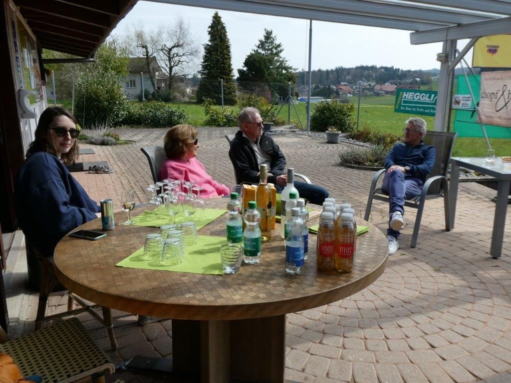 Ab 11.00 Uhr gab es einen kleinen Apéro mit Gebäck und Wein, und die Mitglieder konnten bei strahlendem Sonnenschein die Plätze beim gemeinsamen Spiel einweihen. Da man sich seit letztem Herbst nicht mehr gesehen hat, gab es vieles zu erzählen und anschliessend konnte man beim gemeinsamen Grillieren noch gemütlich zusammensitzen.
